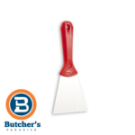 Great for removing sticky deposits that would clog a brush and for dealing with dried or burnt-on foods and ingredients, this Hand Scraper features a stainless flex steel blade with protective rounded corners, a high-strength attachment, and a special ergonomic finger rest.