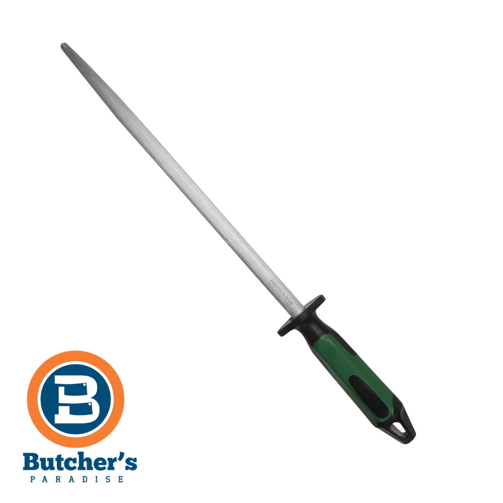 BUTCHER’S 12″ FDICK KNIFE SHARPENING STEEL REGULAR CUT 30CM GREEN BLACK HANDLE