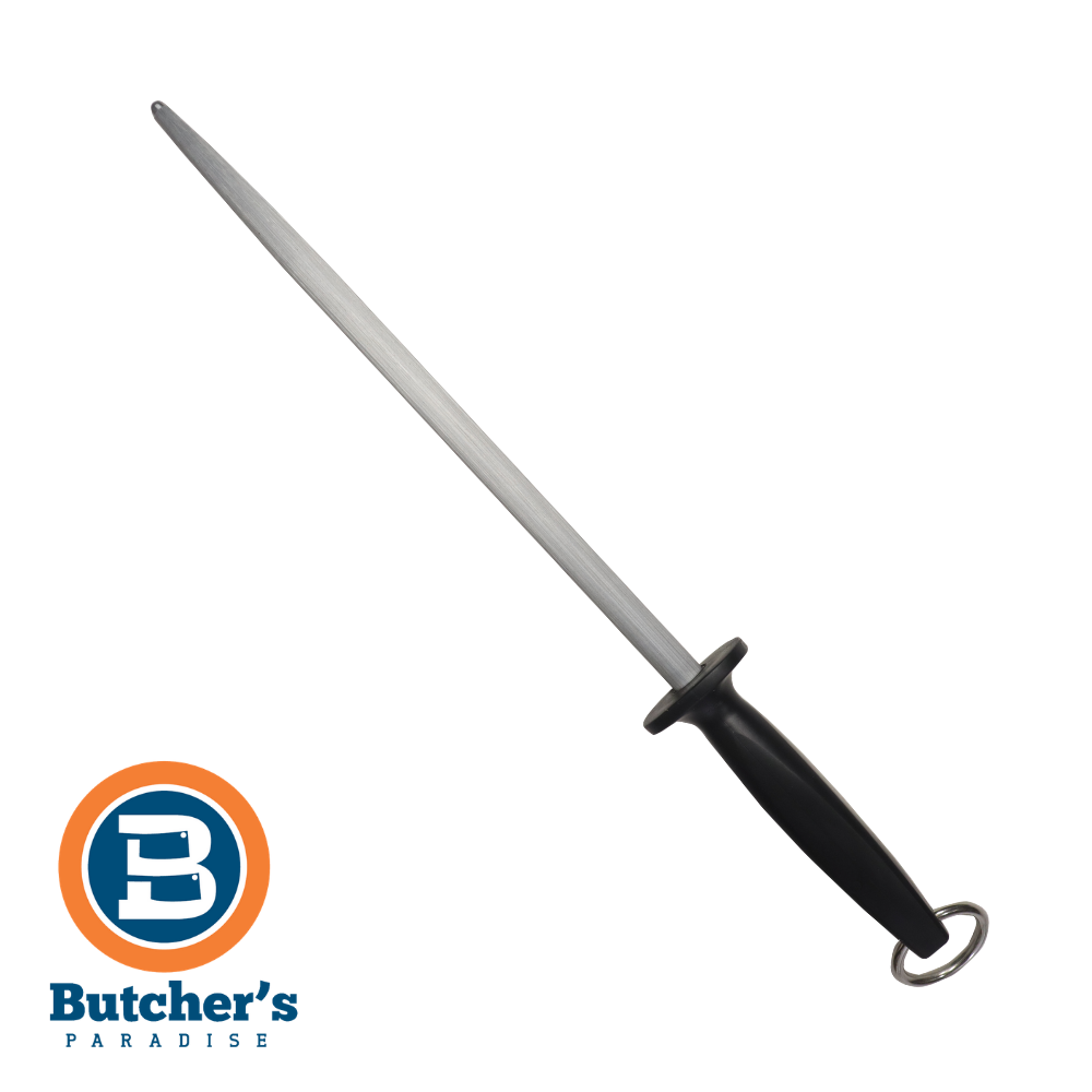 BUTCHER’S 12″ FDICK KNIFE SHARPENING STEEL REGULAR CUT ROUND 30CM BLACK HANDLE