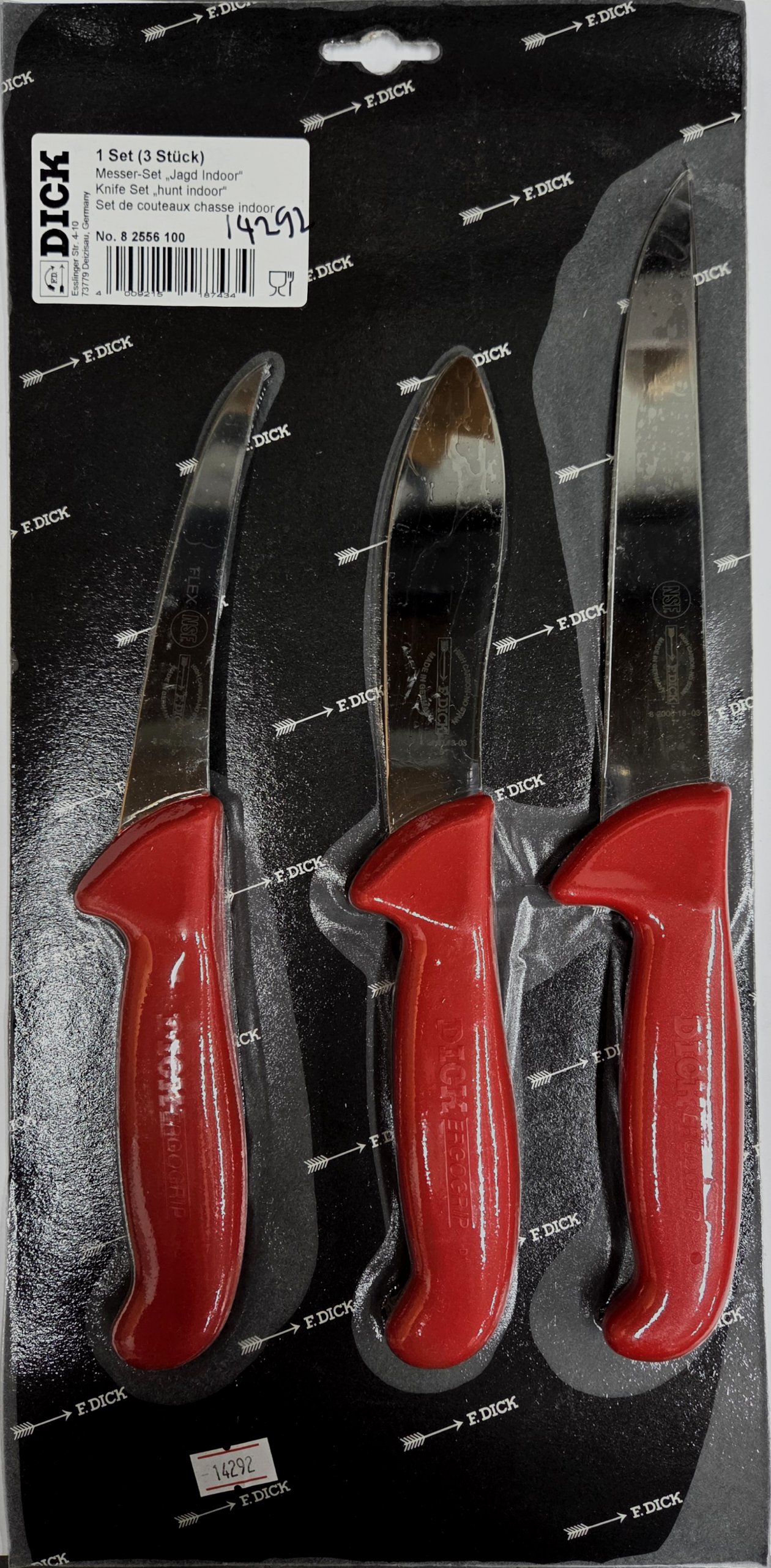 YOU ARE PURCHASING A BRAND NEW F. Dick 82556100 3-Piece RED Butchers Chefs Knife Set Pouch Ergogrip Germany