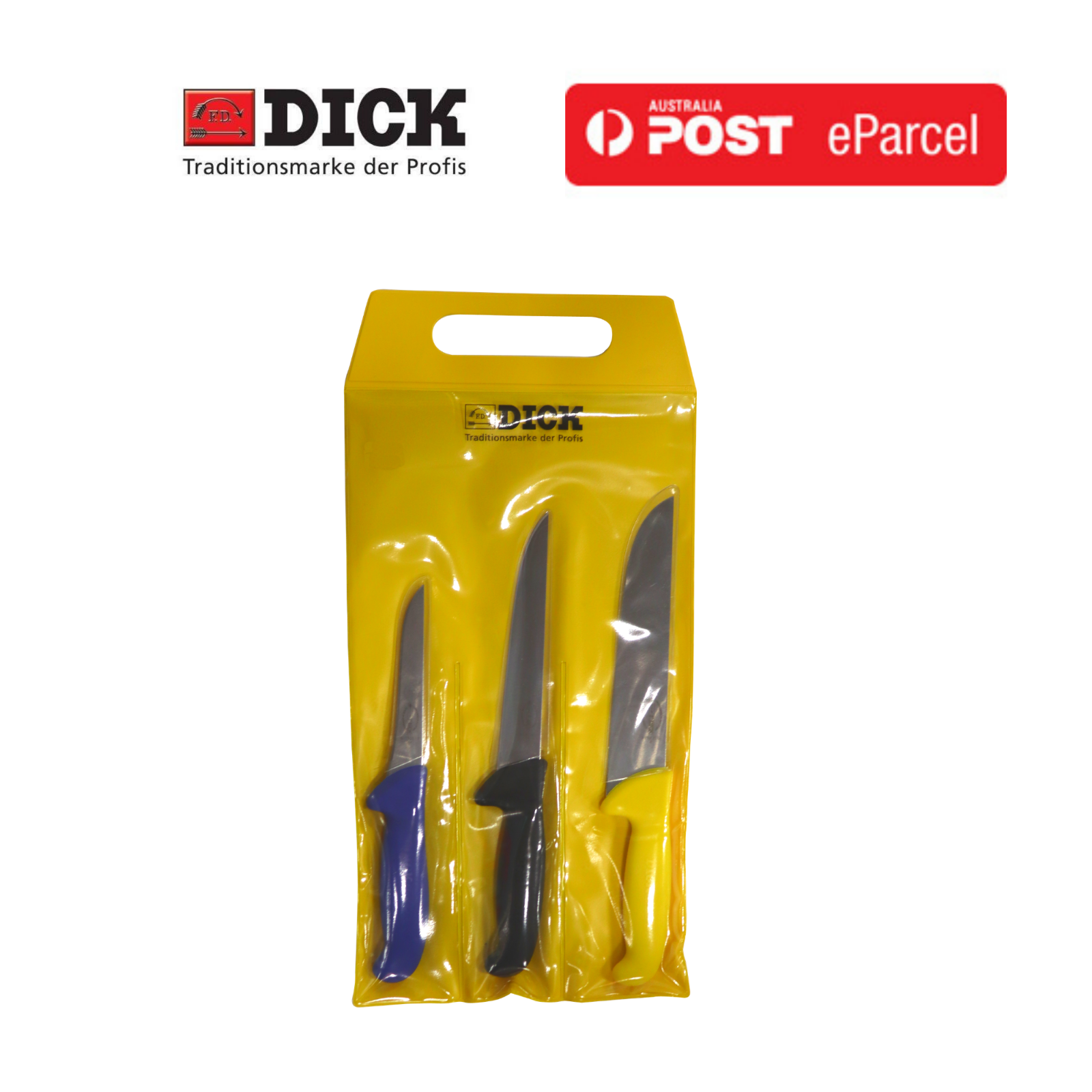 YOU ARE PURCHASING A BRAND NEW F. Dick 8257000 3-Piece Butchers Chefs Knife Set Pouch Ergogrip Germany
